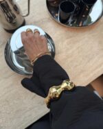 This super chunky open cuff features a voluminous puffy dome design inspired by Eny Lee Parker’s signature sculptures. This playful cuff is perfect to wear on it’s own or stack with delicate chain bracelets or statement rings.