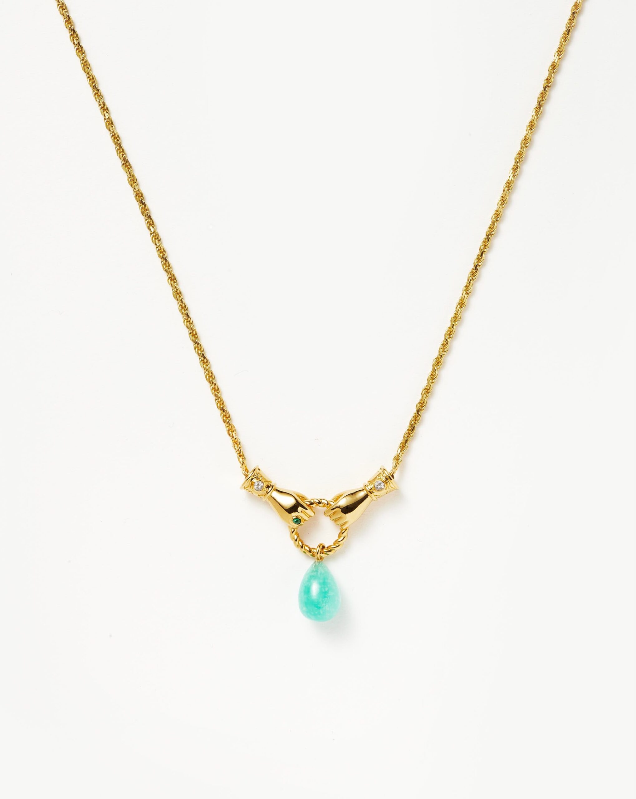 Harris Reed In Good Hands Drop Pendant Necklace | 18ct Gold Plated/Amazonite & Pearl