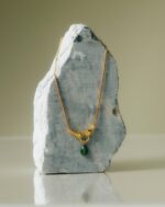 A Harris Reed x Missoma Icon reimagined. Two Georgian-inspired hands come together in the 18ct gold vermeil pendant. each holding a twisted ring with a single oval drop malachite gemstone. Intricately detailed. each cuff has been illuminated with white pearl cabochons and features a ring with a malachite semi-precious stone. The 18ct gold plated chunky rope chain is finished with the collection’s bespoke butterfly end charm. a symbol of duality.