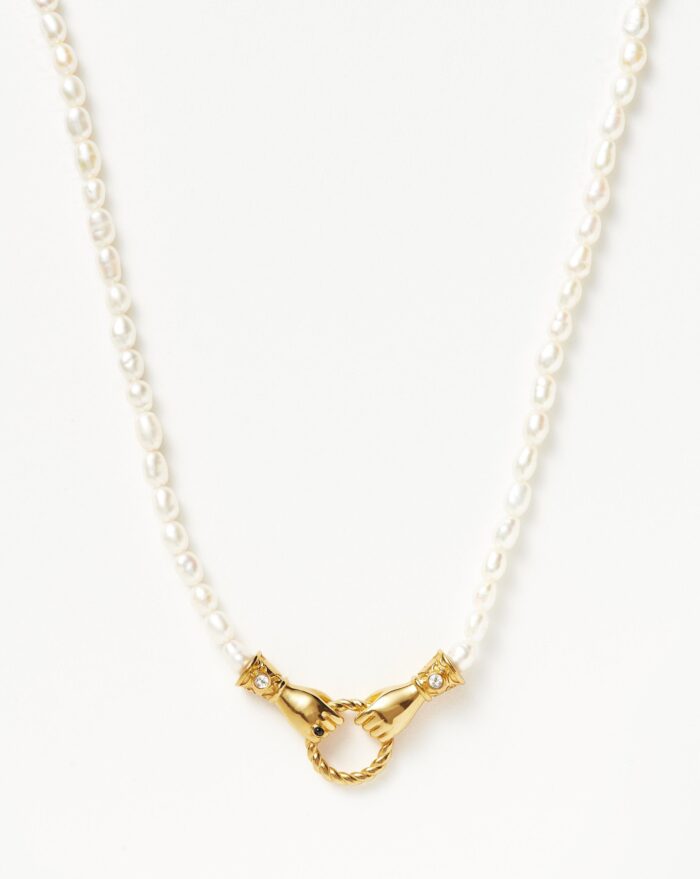 Harris Reed In Good Hands Pearl Pendant Necklace | 18ct Gold Plated/Pearl & Black Onyx