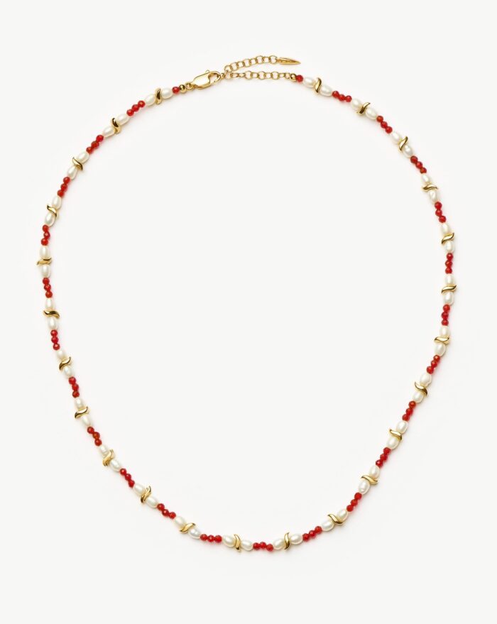 A limited-edition necklace for the Year of the Snake. Seed Pearls and Red Quartz gemstones are offset with gold beads to form this beaded bracelet. inspired by the symbol ‘S’ for snake and for Savi. Wear solo. layer up or pair with the matching Savi Seed Pearl Beaded Bracelet.