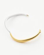 This everyday mixed metal bangle features our signature Savi ‘S’ shape as the perfect starting point for your arm stack. Designed with a hinged oval shape for easy wear. the bangle can be worn with either the gold or silver front facing. giving you two bangles in one.