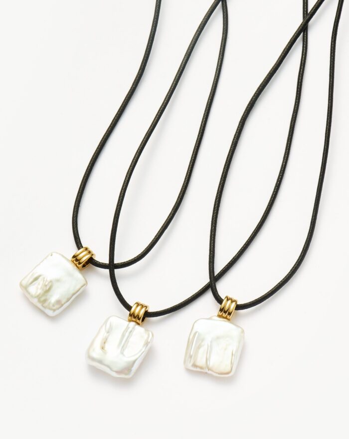 Be the first to review “Square Pearl Pendant Cord Necklace | 18ct Gold Vermeil/Pearl” Cancel reply