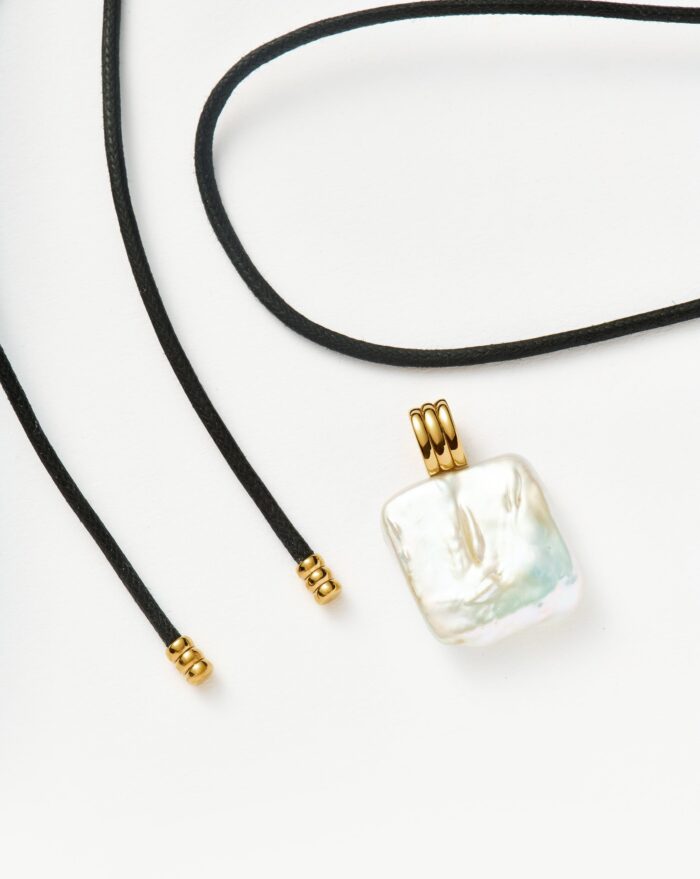 Pearls. reimagined. This statement pearl pendant cord necklace features ridge detailing and a removable square pearl pendant. The cord can be tied at any length. doubled up as a choker. or worn long — your new everyday staple.